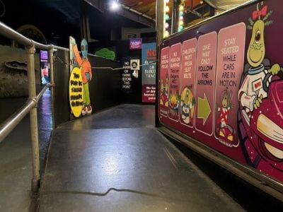 Level access through two successive doors 850mm wide. Guests must be able to walk unaided to the ride and onto the cyber scooter in order to ride. Please note that the scooters weight limit is one adult and one child (max combined weight of 23st). Two adults (guest and carer) cannot ride together.Guests must be able to understand verbal instructions should an evacuation occur.