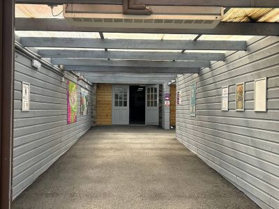 Accessed via a manual sliding door (900mm) then 30m of tarmac path at least 2.65m wide, with a moderate slope in places. This tarmac continues around the centre. The art display area within is accessed via a manual door (670mm). Staff are very happy to assist with access to this area – please just ask.