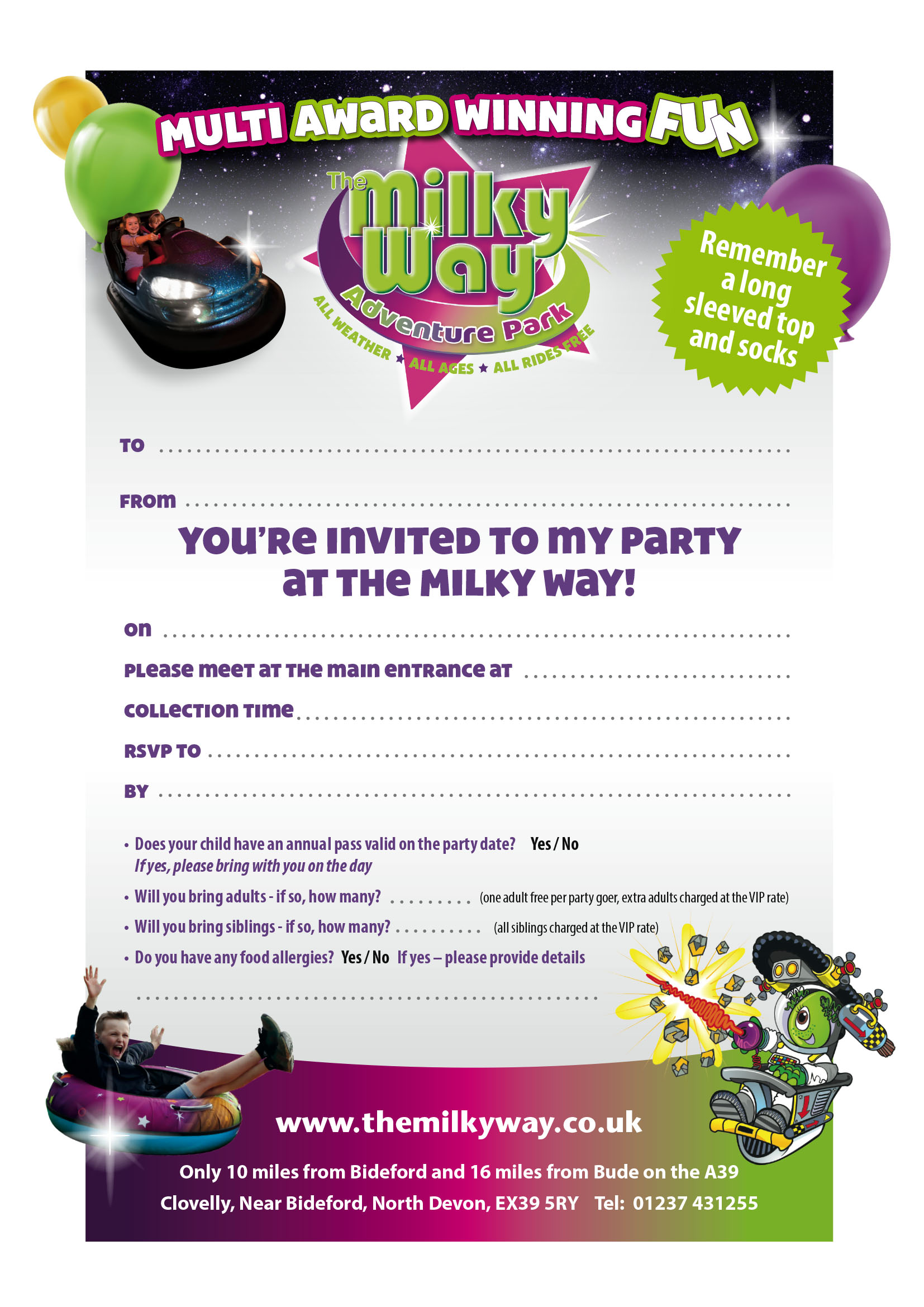 For just £5 per guest, we can provide a no hassle, bespoke Party Gift that's guaranteed to bring happiness to your party guests! Not only will they receive a voucher that entitles one person to return for free to The Milky Way, they will also get the chance to choose their own gifts, with a £5 voucher to spend in The Milky Way shop!